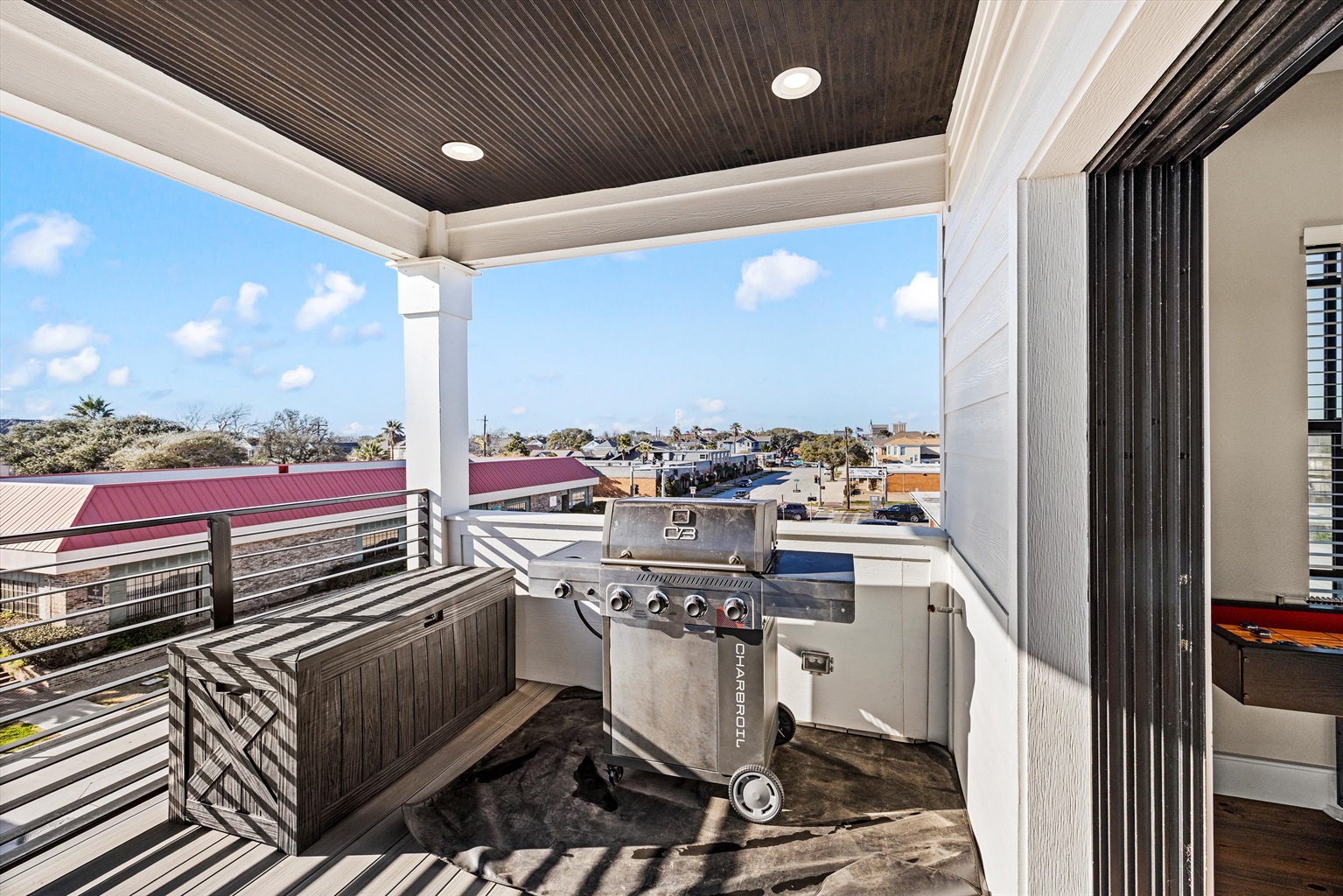 • Balcony with seating + outdoor dining + grill