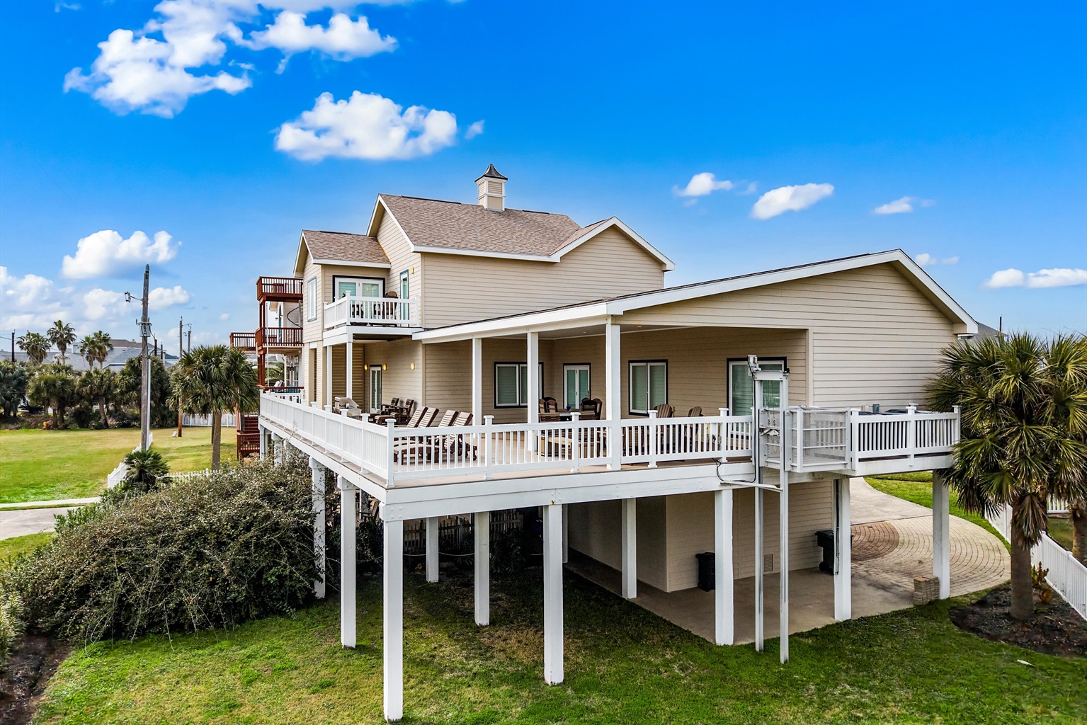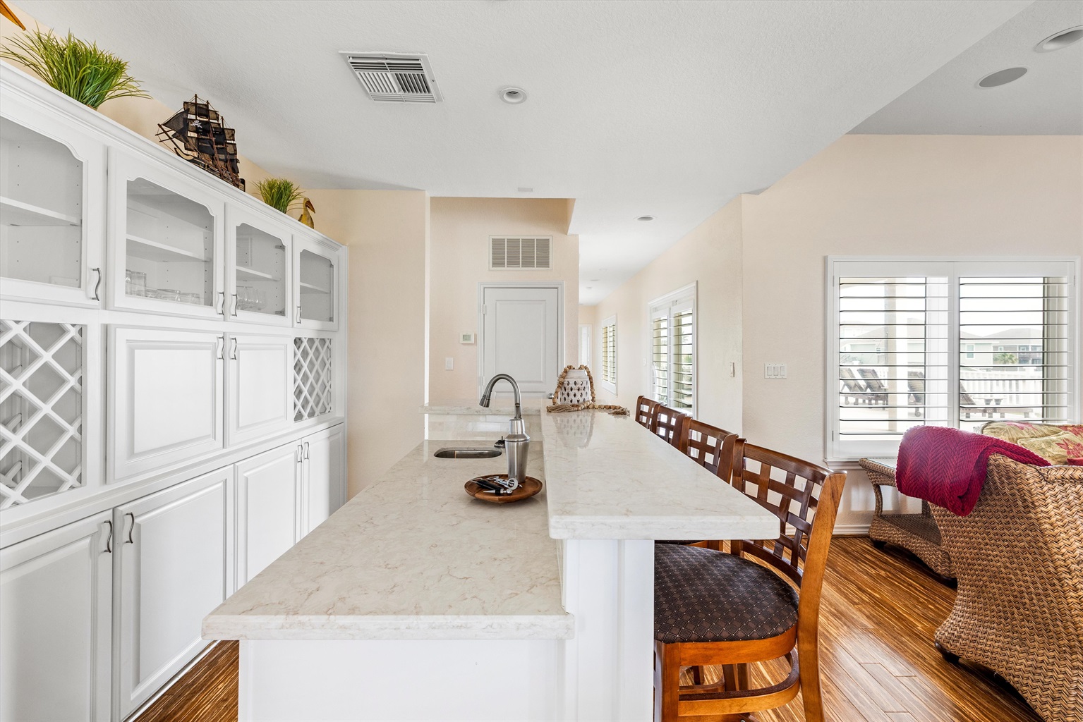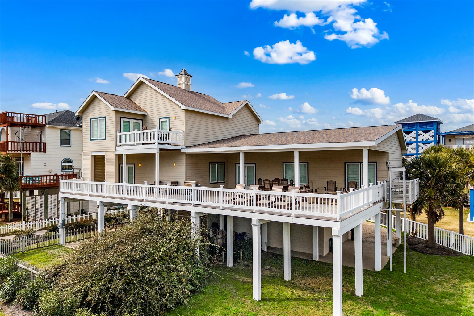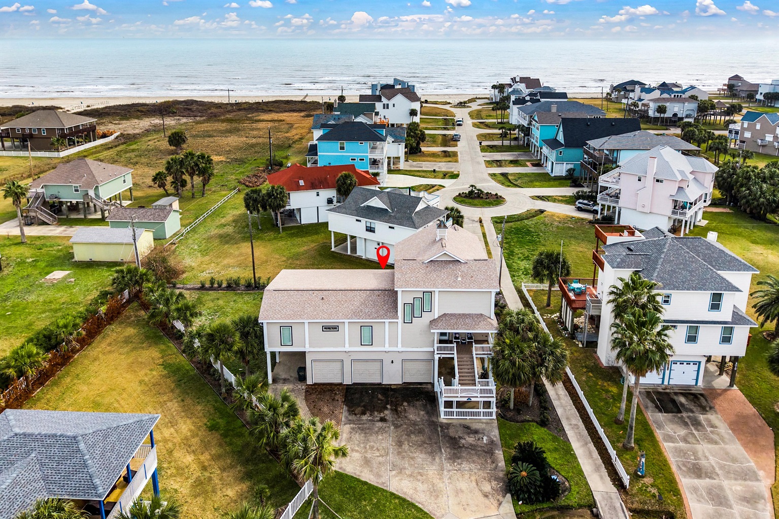 4 Bedrooms • 4 Bathrooms (3 full, 1 half) 4 Baths (3 full, 1 half) • Sleeps 4-8Welcome to The Mutiny House, a refined yet laid-back coastal escape in Pirates Beach on Galveston’s West End—designed for elevated group getaways with a playful beach spirit 🐚✨