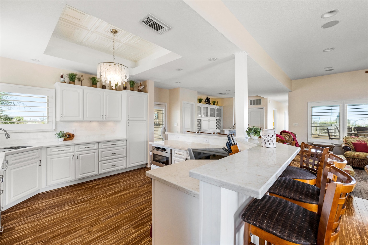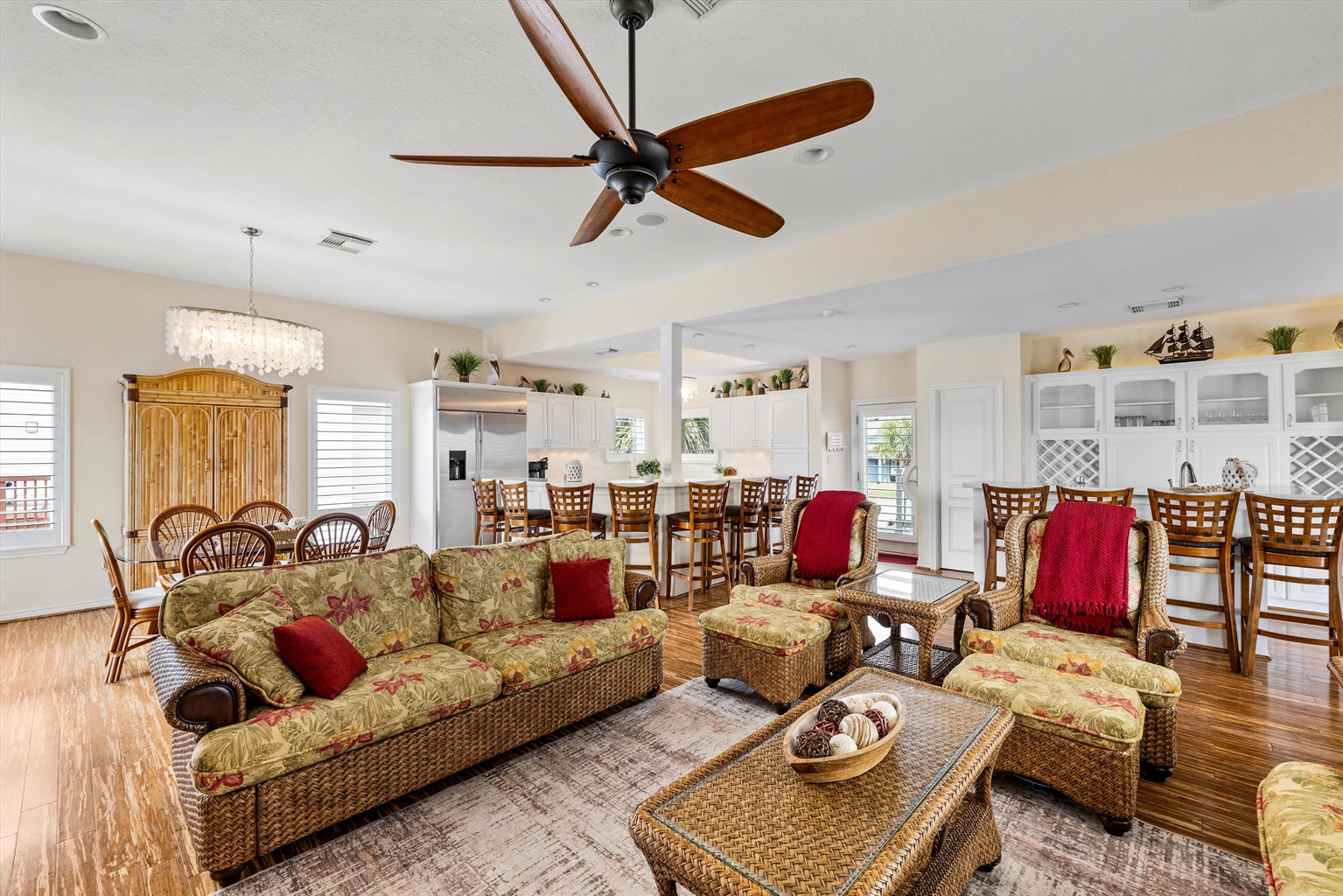 Inside, you’ll find spacious comfort with a huge kitchen made for hosting 🍽️—tons of counter space, a wet bar with wine fridge 🍹, coffee bar ☕, and a commercial fridge with ice maker 🧊. Smart TVs on every level 📺, Xfinity high-speed WiFi 📶, and multiple work areas + a desk 💻 make it easy to blend vacation with remote work if needed.